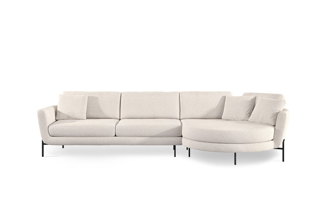 Het is onmogelijk om onverschillig voorbij te gaan aan de hudson. Ze trekt de aandacht door haar unieke vorm. Hoewel de constructie stevig is, oogt ze licht als een veertje dankzij de dunne maar sterke poten. Ze combineert elegantie en klassieke elementen met functionaliteit en stabiliteit. De organische en onregelmatige vorm van de hudson zorgt ervoor dat ze, ondanks haar afmetingen, bijna lijkt te vloeien in het interieur. De zachte rondingen geven een bijzonder knus effect. De afgeronde lijnen benadrukken de visuele zachtheid en brengen gezelligheid in de ruimte. In combinatie met de stalen elementen van het onderstel ontstaat een geheel dat uitblinkt in visuele lichtheid. Verkrijgbaar in verscheidene stoffen.