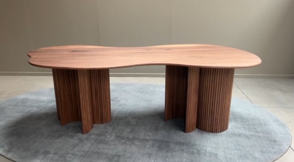 Deze tafel is een uniek meesterwerk. Het houten onderstel is slim ontworpen om elke zitplaats optimaal te benutten, terwijl het tafelblad met zijn opvallende Curvus-vorm een kunstwerk op zich is. Of u nu een compacte tafel voor een intiem appartement of een imposante tafel voor een ruime eetkamer zoekt, de Zoe kan op maat worden aangepast.